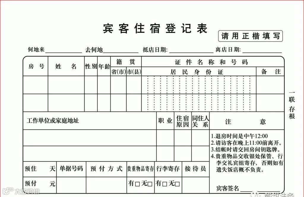 — — — 住宿登记表的重要性 — — —