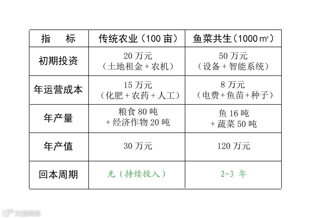 山东寿光蔬菜大棚:传统种植年收入约 8 万元,改造为鱼菜共生后年收入提升至40万元。