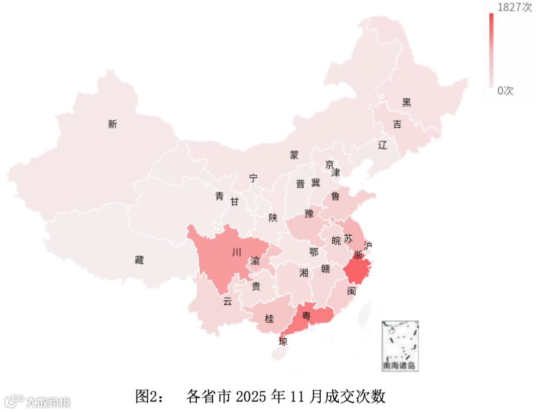 2025年11月全国司法拍卖房产成交共计14059次,同比下降7.10%。区域上,以浙江、广东省为首的黄河以南的省市司法拍卖市场较为活跃,前三位分别是浙江省、广东省、四川省。