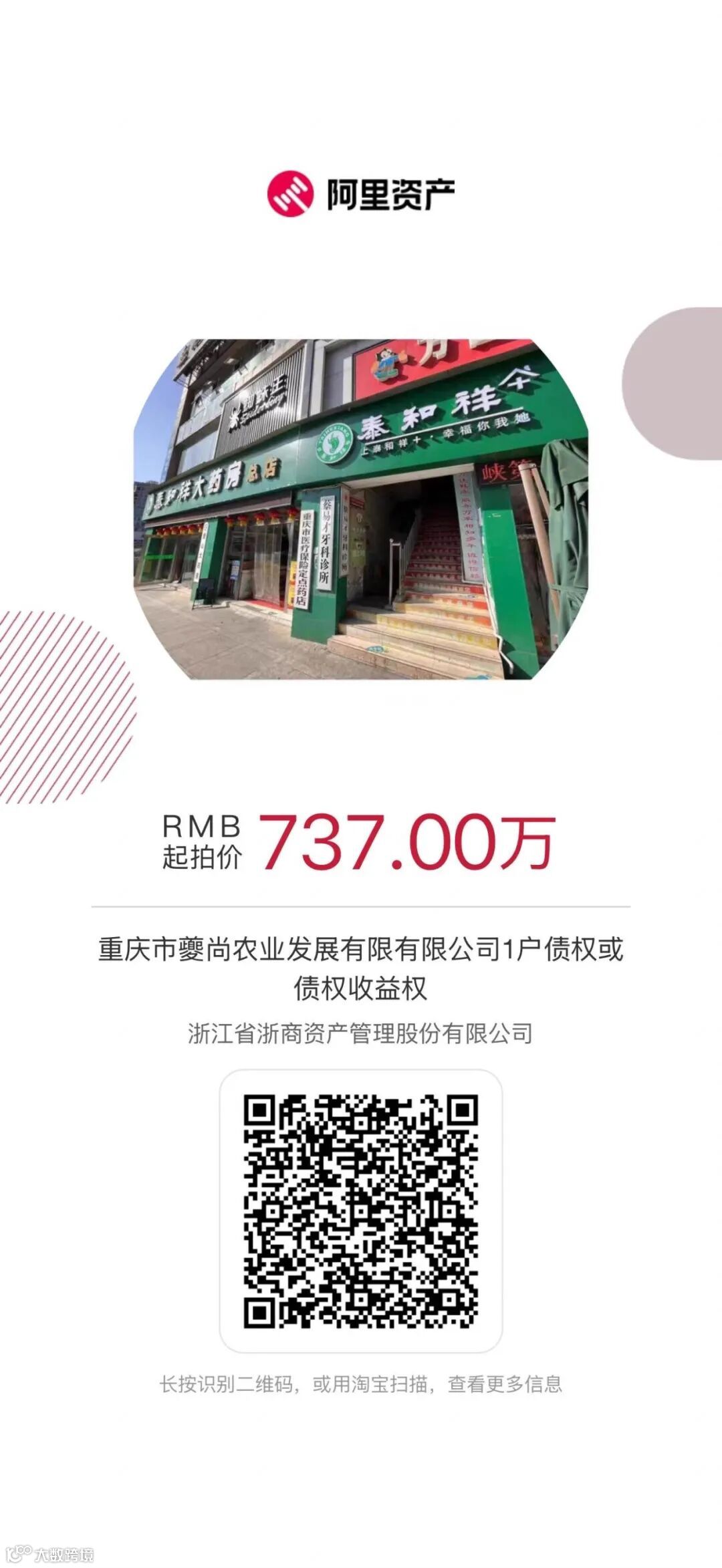 浙江省浙商资产管理股份有限公司将于【2025】年【4】月【30】日10时至【2025】年【5】月【1】日10时止(延时的除外)在浙江省浙商资产管理股份有限公司淘宝网资产竞价网络平台上(http://zc.paimai.taobao.com)进行公开竞价活动,可识别下图查看详情。