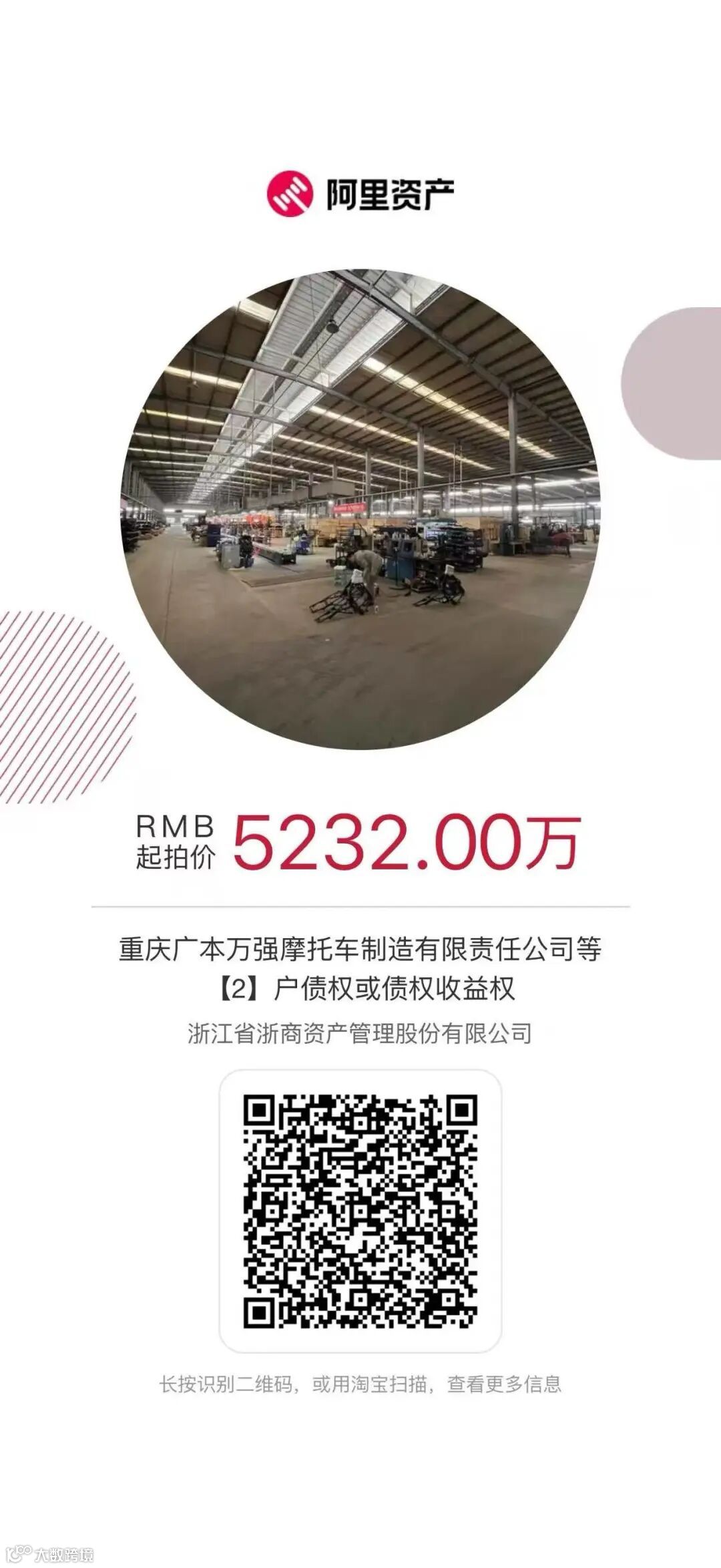 浙江省浙商资产管理股份有限公司将于【2025】年【5】月【30】日10时至【2025】年【5】月【31】日10时止(延时的除外)在淘宝网资产竞价网络平台上(http://zc.paimai.taobao.com)进行公开竞价活动,可识别下图查看详情。