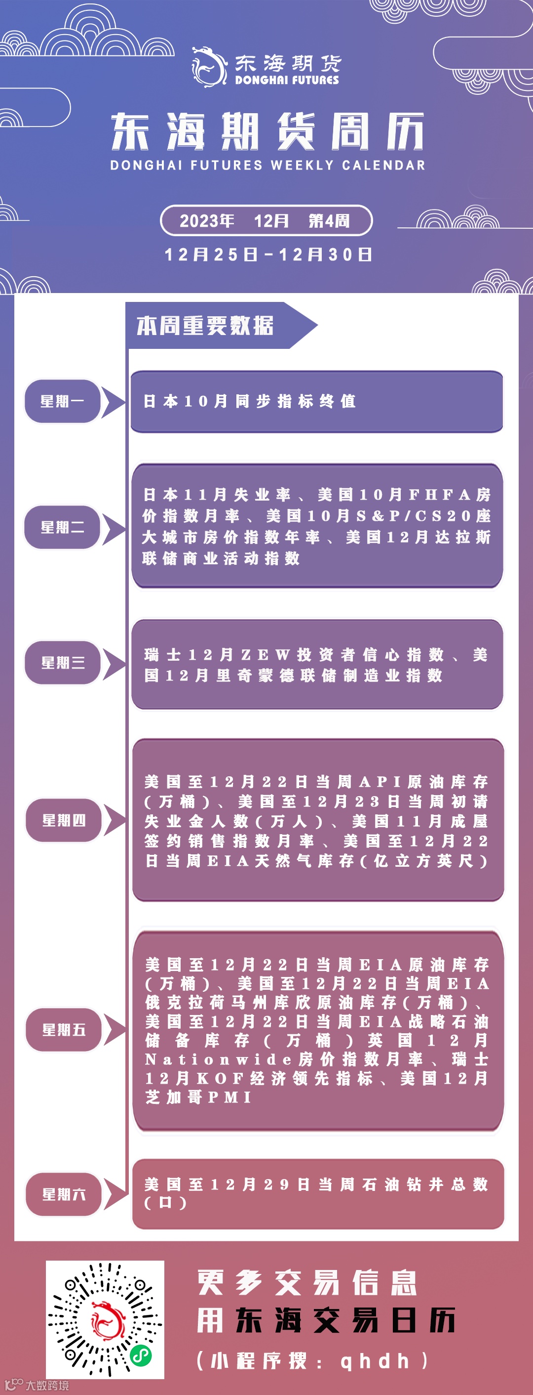 东海期市周历丨本周你需要知道的重要数据(12月25日-12月30日)