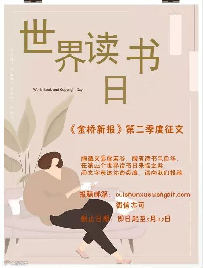在2019年4月23日第24个世界读书日来临之际,愿所有金桥人遨游四海搏激流,在书中的百花园里,“读”辟蹊径,“读”占鳌头,用文字分享生活、工作中的感悟,增益新知,丰富企业文化!