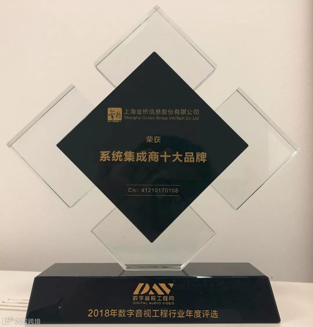 日前,由DAV数字音视工程网、DAV《数字音视工程》杂志主办的“2018年度数字音视工程行业十大品牌”评选活动圆满结束。历经数月的激烈角逐,行业专家严格评审,上海金桥信息股份有限公司荣获2018年度“系统集成商十大品牌”奖。
