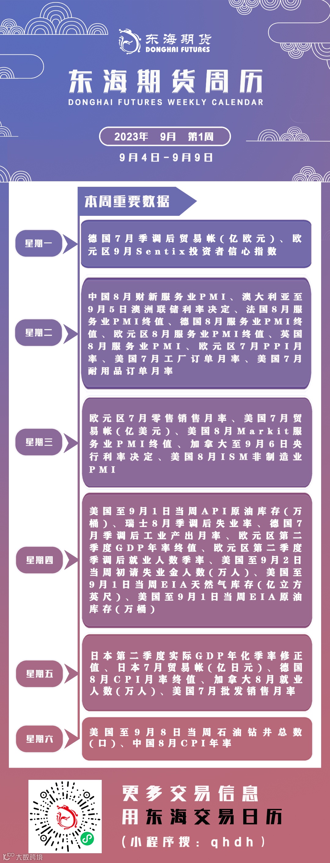 东海期市周历丨本周你需要知道的重要数据(9月4日-9月9日)