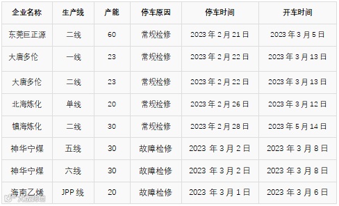 装置方面:据悉,四川泸天化年产44.5万吨天然气制甲醇装置因设备故障于3.3日停车,预计为期一周。云南云天化年产26万吨甲醇装置因成本问题于1月1日停车,于3月5日点火重启,预计3.5日附近出产品。黑龙江亿达信年产10万吨焦炉气制甲醇装置自1月底起停车检修,目前维持停车,预计3月底附近重启。云南云天化年产26万吨甲醇装置因成本问题于1月1日停车,于3月1日点火重启,预计3.5日附近出产品。