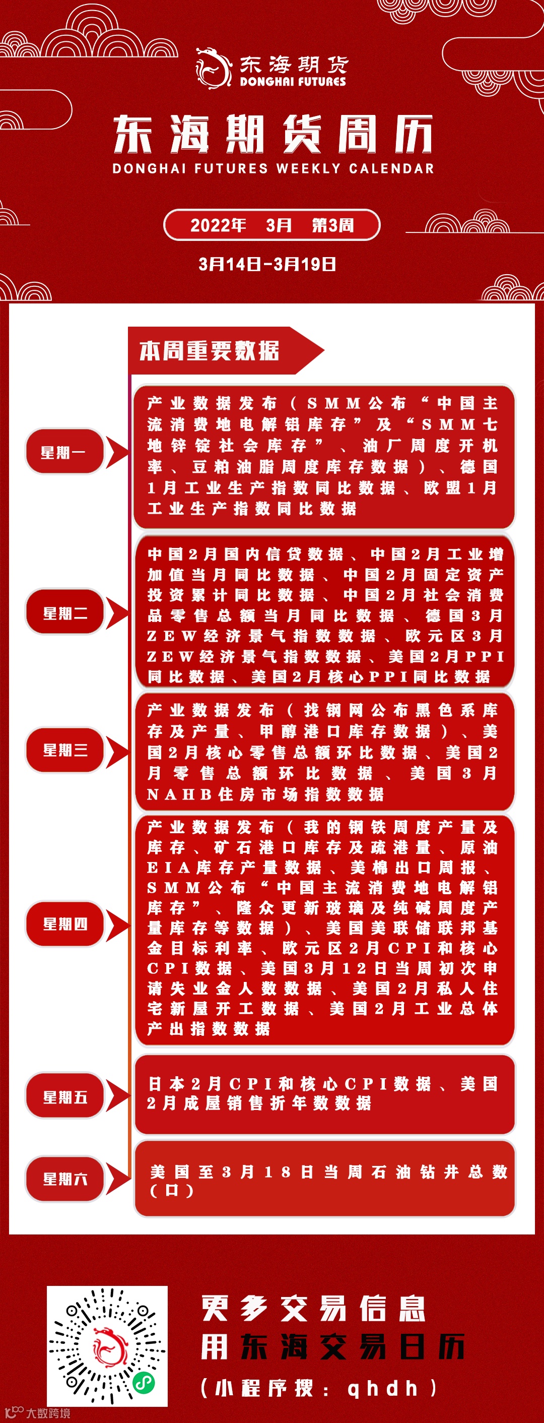 东海期市周历丨本周你需要知道的重要数据(3月14日-3月19日)