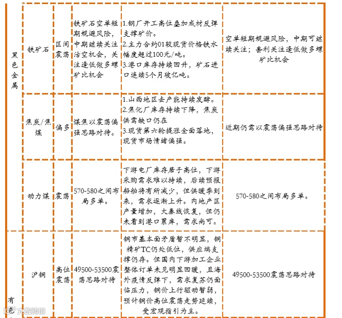 【重点关注】期市周度策略汇总