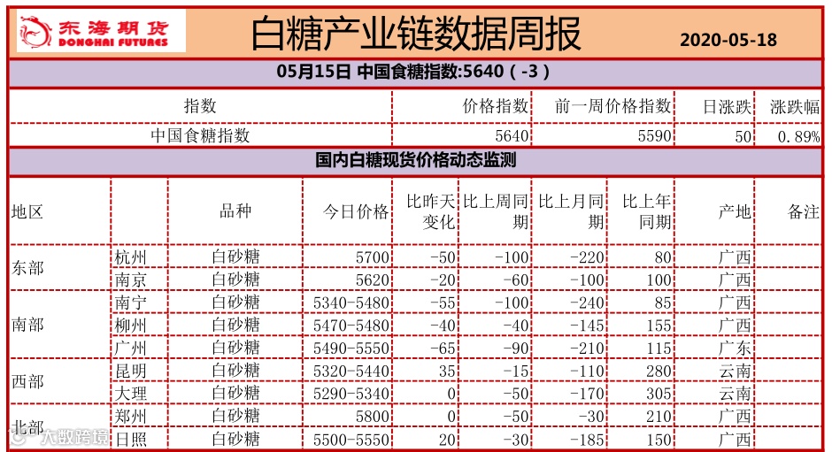 导读:白糖产业链行情如何?快来看看东海数据周报吧!