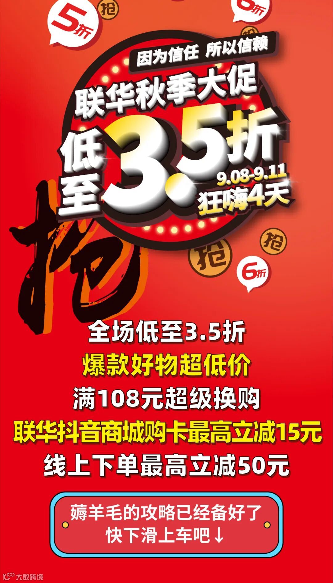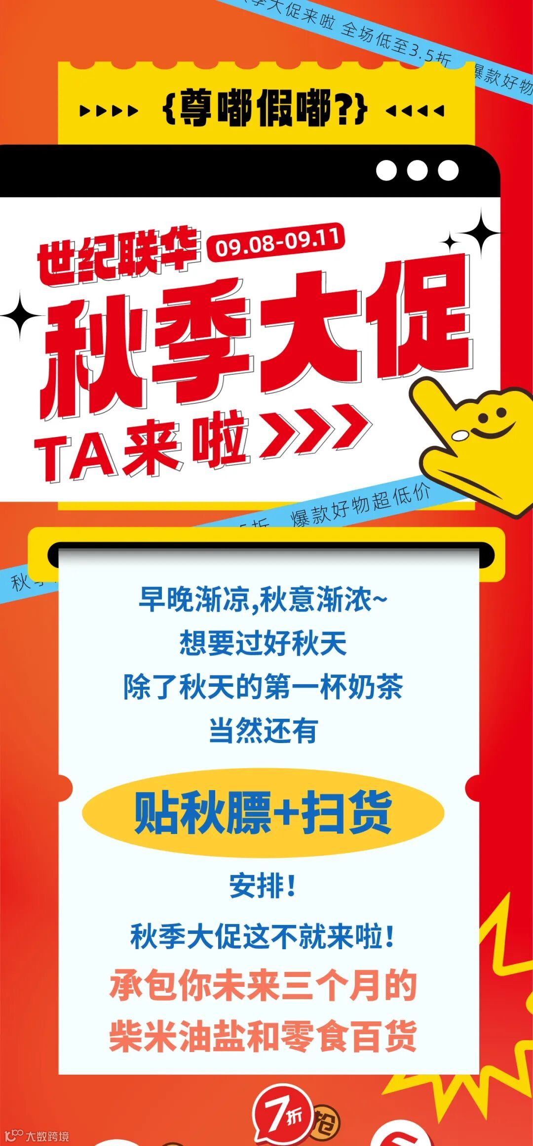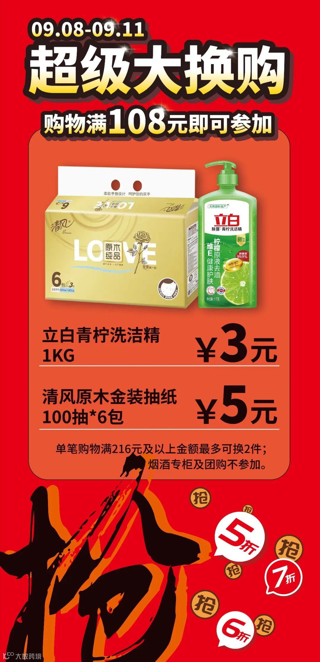 倒计时1天!秋季大促全场低至3.5折!满108超级换购!还有线上到家满减!狂嗨4天!