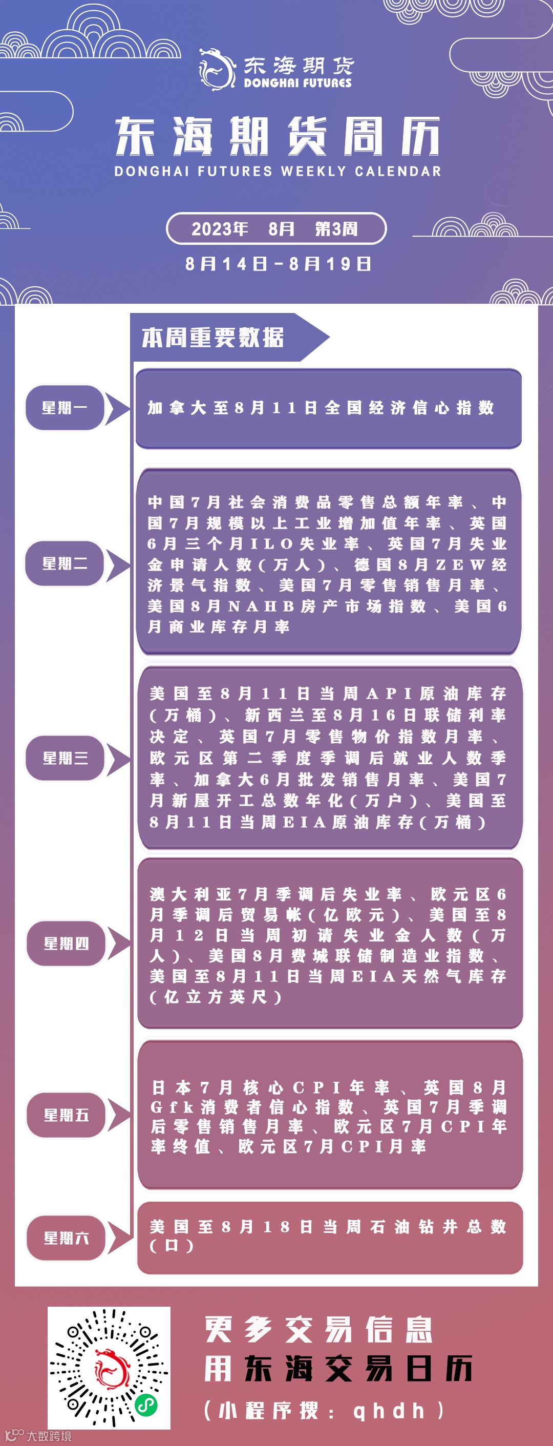 东海期市周历丨本周你需要知道的重要数据(8月14日-8月19日)