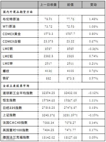 5.市场情况:Brent主力收于77.76美元/桶,前收75.91美元/桶,WTI主力72.89美元/桶,前收69.96美元/桶。Oman主力收于76.94美元/桶,前收75.3美元/桶,SC主力收于525元/桶,前收502元/桶。