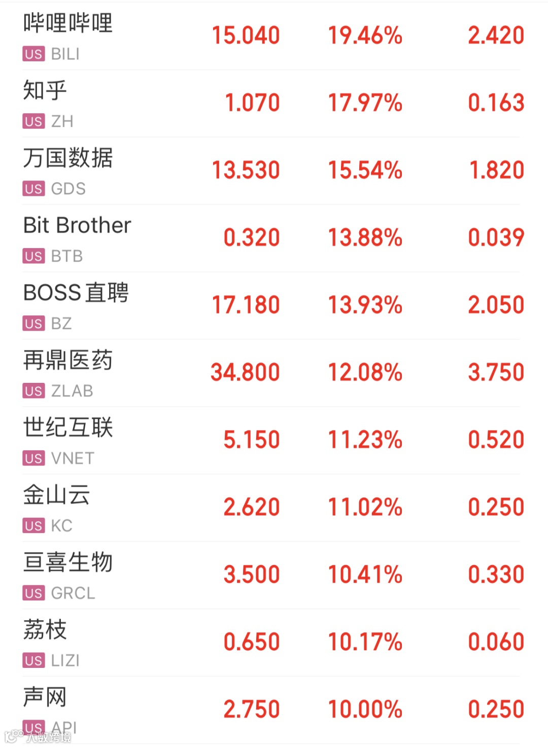 热门中概股集体上涨,哔哩哔哩一度涨逾20%,截至发稿前仍涨超18%。