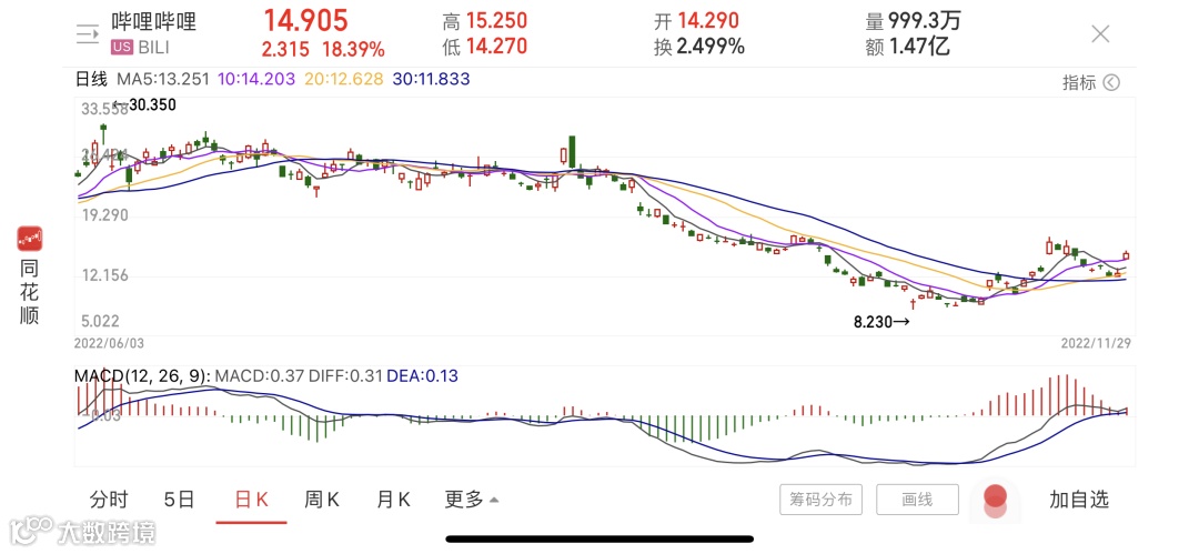 拼多多日前发布超预期的三季度业绩后,美股价格应声上涨超12%,这让市场投资者对于即将发布三季报的中概股都给予了极大的关注,包括同时作为知名中概股和互联网平台的哔哩哔哩。