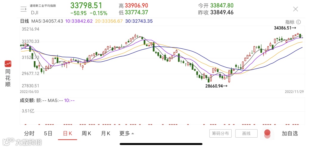 当地时间11月29日,美股三大指数开盘后震荡下行。