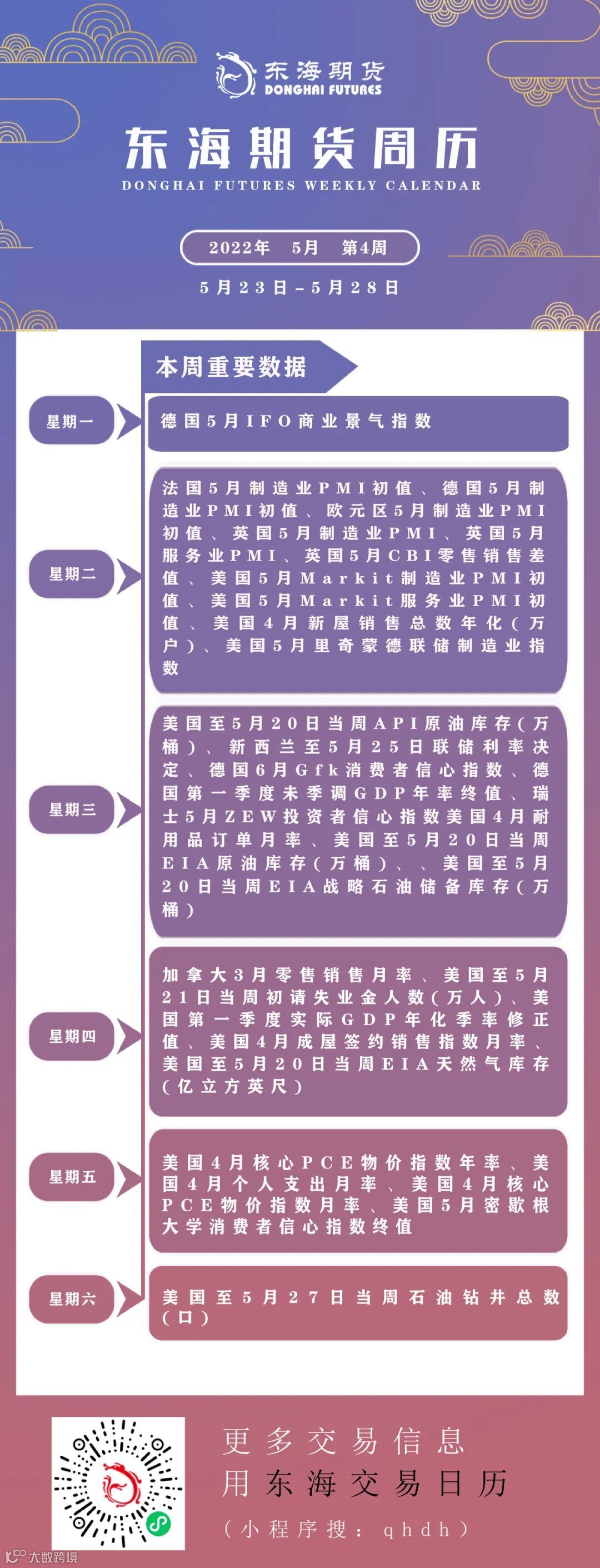 东海期市周历丨本周你需要知道的重要数据(5月23日-5月28日)