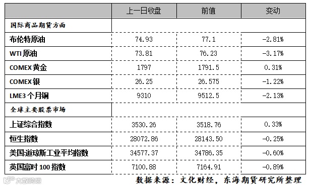 LME 铜开于9511美元/吨,收盘报9310美元/吨,较前日收盘价跌幅2.13%