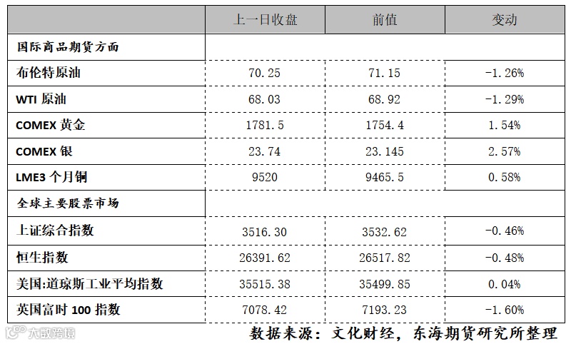 1.核心逻辑:中期内美国疫情存尾部风险,美国经济增长担忧,美国债务问题担忧等存利多,但在美联储下一步考虑TAPER的情况下反弹高度或受限。长期来看,关注市场对美联储逐步退出宽松政策的押注是否继续升温。