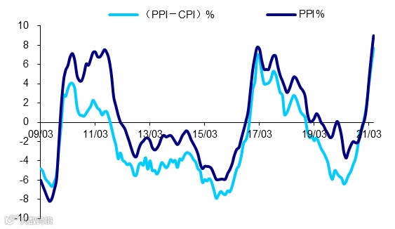 图3 (PPI-CPI)及PPI同比增速