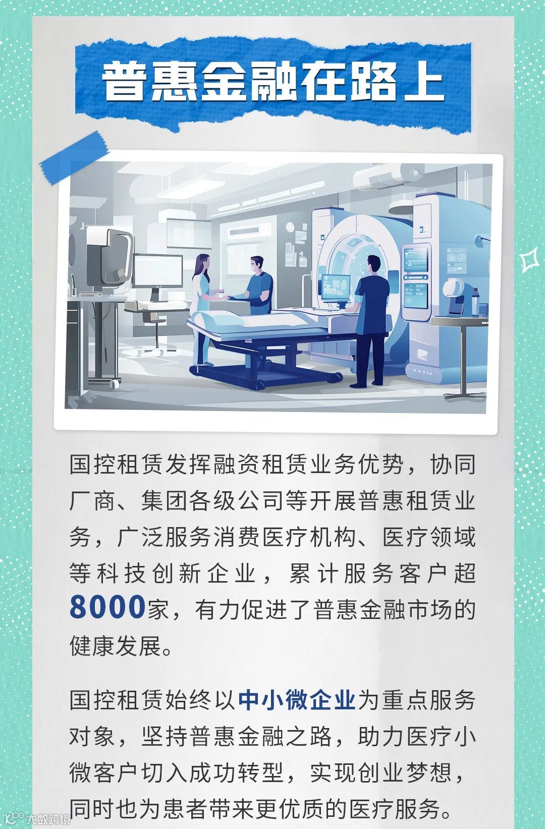 融合产业,汇聚创新。国控租赁将持续坚持“产业金融+科技运营”,以专业创新成就产业发展,为国家医疗产业发展和国民健康贡献力量。