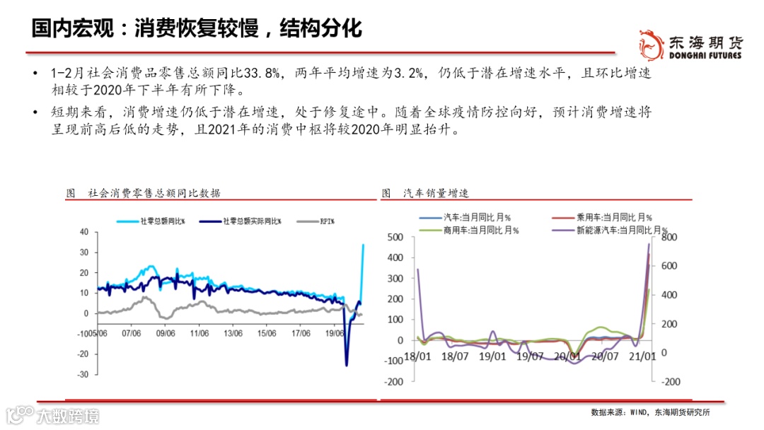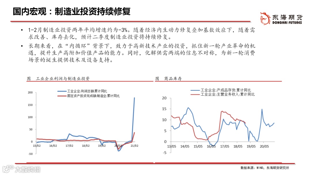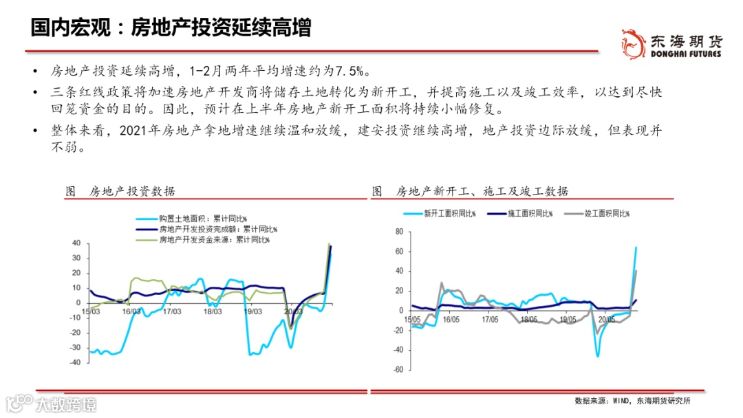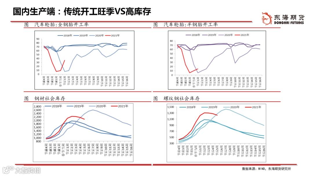 ◆生产端:2月在“就地过年”政策下,生产强于季节性,3月复工进程较快,一季度的工业生产保持在较高水平。4月步入春季施工旺季,有利于施工进度的加快,或将带动后端建材产品需求的回升。