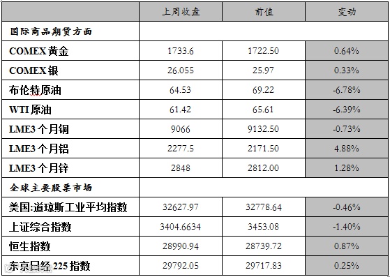 全球主要商品价格周变化