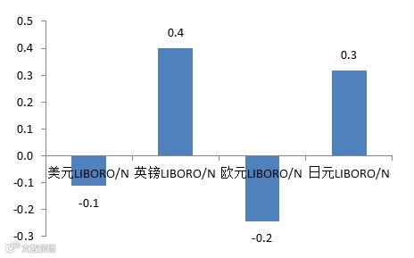 全球短期流动性周变化 单位:bp