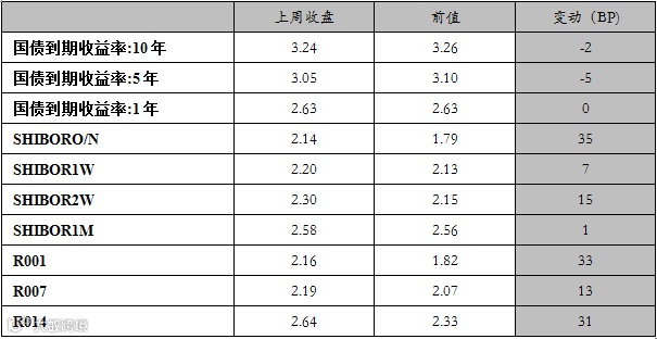 同业拆借利率周变化