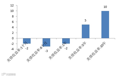 美国国债收益率周变化 单位:bp