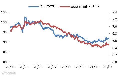 美元指数及人民币汇率