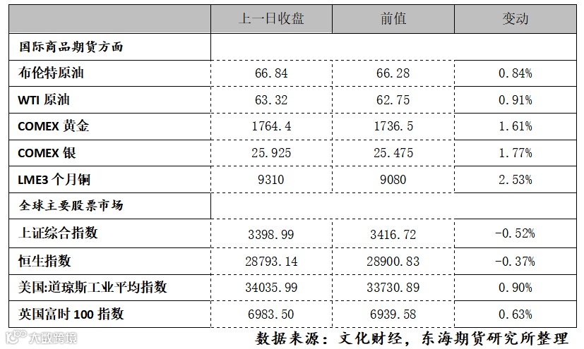 1.核心逻辑:欧洲疫苗接种缓慢,对疫苗接种谨慎加剧了对疫情难以控制的担忧,能源需求前景存在很大的不确定性。因担忧可能出现的血栓风险,欧洲一些国家要求对部分人群谨慎使用阿斯利康疫苗。国际油价高位震荡。