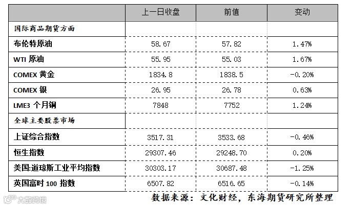 1.核心逻辑:市场仍然在需求受压和供应收缩前景中权衡,全球疫情防控继续限制需求,美国石油活跃钻井平台连续10周增长,美国刺激计划方案在讨论之中,沙特阿拉伯即将减产,国际油价小幅波动。