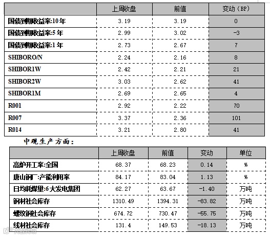 流动性方面:上周央行逆回购操作投放资金5100亿元,到期回笼资金3200亿元,央票发行50亿元,央票到期50亿元,国库现金定存500亿元,公开市场净投放资金2400亿元。