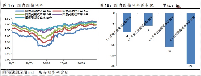 宏观数据方面,10月制造业PMI 指数小幅不及预期,经济修复动能转换,消费及出口需求稳中向好。10生产指数略有回落,而库存指数全线下滑,表明企业或已经转到主动去库存阶段。目前下游需求较为旺盛,但企业对未来预期趋于谨慎,开始主动降低库存水平。随着国内消费旺季过去,欧美疫情恶化抬高外需面临的不确定性,需求增长乏力或将成为制约经济复苏的主要拖累。