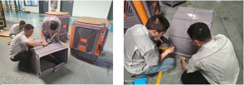 看到这一场景,为保障员工的身心健康,传递公司对员工的关爱,营造良好和谐的工作气氛。在这个史上最“热情”的七月,公司购买了数台冷风机,工厂厂长和支部书记带领小队成员加急组装冷风机送往每一个工作岗位,保障每个工人在工作时都能在炎炎夏日感受到一阵阵凉风。