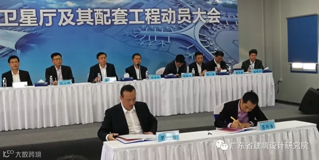 开工仪式结束后,深圳机场集团在现场召开卫星厅及其配套工程动员大会。深圳机场集团副总裁、扩建工程指挥部指挥长杨海斌代表机场集团,分别与监理单位、设计单位、施工单位三方代表签订廉洁承诺书和安全协议。