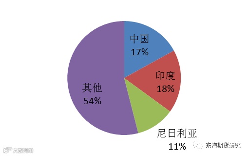 根据 USDA 的统计,全球花生每年产量约为 4,500 万吨左右。其中花生生产大国包括中国、印度、尼日利亚和美国等。近年来,全球花生种植面积及产量呈逐年上升态势,其中印度花生种植面积居前列。USDA数据显示,2019年全球花生种植面积为2675万公顷。其中印度花生种植面积为488万公顷,中国为460万公顷。