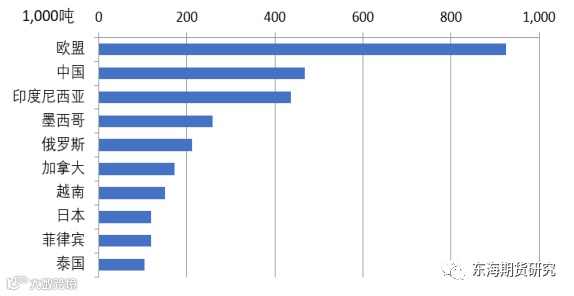 全球花生贸易市场总进口量大约 350 万吨左右。其中因为欧盟国家不自己种植花生,是全球花生进口量最大的地区,每年的进口量在 85-95 万之间。中国作为花生生产大国,也在逐渐增大花生的进口量。