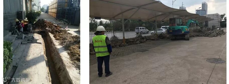 7月31日,污水管道拆除、隔油池安装;8月2日,车棚地面及管路填埋、浇筑。这是项目组确定的两个关键节点。污水管安装后必须试水、停车防撞轮胎露出地面高度22cm、集中线槽宽度20cm、沉水井确保坡度以加速地面排水……这些都是现场监控发掘的一个个小细节标准,通过团队的智慧,我们逐一化解。