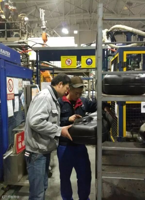 这时,屈浩走过去,“忘记口模更换带来的影响了?油箱壁厚要用 ‘打点标记法’确定调整区域”。一句简单的话让雷茂鹏茅塞顿开,心中豁然开朗,重新挤料,组织人员从材料进入模具的时候开始用打点的方式做标记,对应生产出来成品的各个点位有目标性的调整油箱的厚度。这样一来,事半功倍的解决了问题。