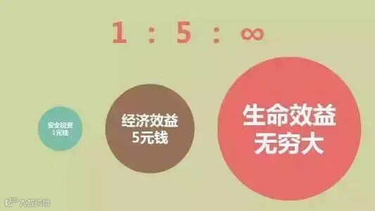 1:5:∞。即1元钱的安全投入,可创造5元钱的经济效益,创造出无穷大的生命效益。