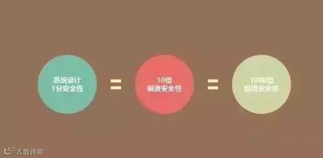 系统设计1分安全性=10倍制造安全性=1000倍应用安全性。意为企业在生产前发现一项缺陷并加以弥补,仅需1元钱;如果在生产线上被发现,需要花10元钱的代价来弥补;如果在市场上被消费者发现,则需要花费1000元的代价来弥补。