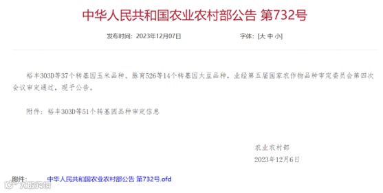 2023年12月以来,农业农村部发布第732、830号公告,64个转基因玉米和17个转基因大豆品种接连通过审定。其中转化体为DBN9936、DBN9858、DBN3601T的转基因玉米品种有37个,转化体为DBN9004的转基因大豆品种有6个,红灵达®可配套以上所有转基因玉米、转基因大豆品种。目前,红灵达®(41%草甘膦异丙胺盐水剂)是国内除草剂在生物育种作物扩作登记转化体最全的产品之一。