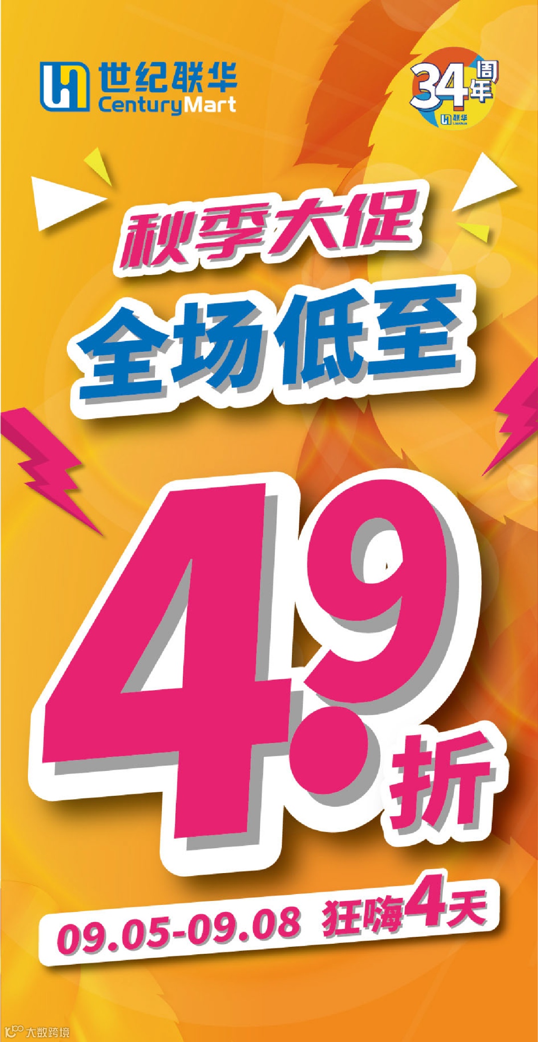世纪联华 秋季大促即将开始,9月5号准时抵达!超级折扣、超多爆品还有换购福利奉上,小伙伴们快来嗨购吧!