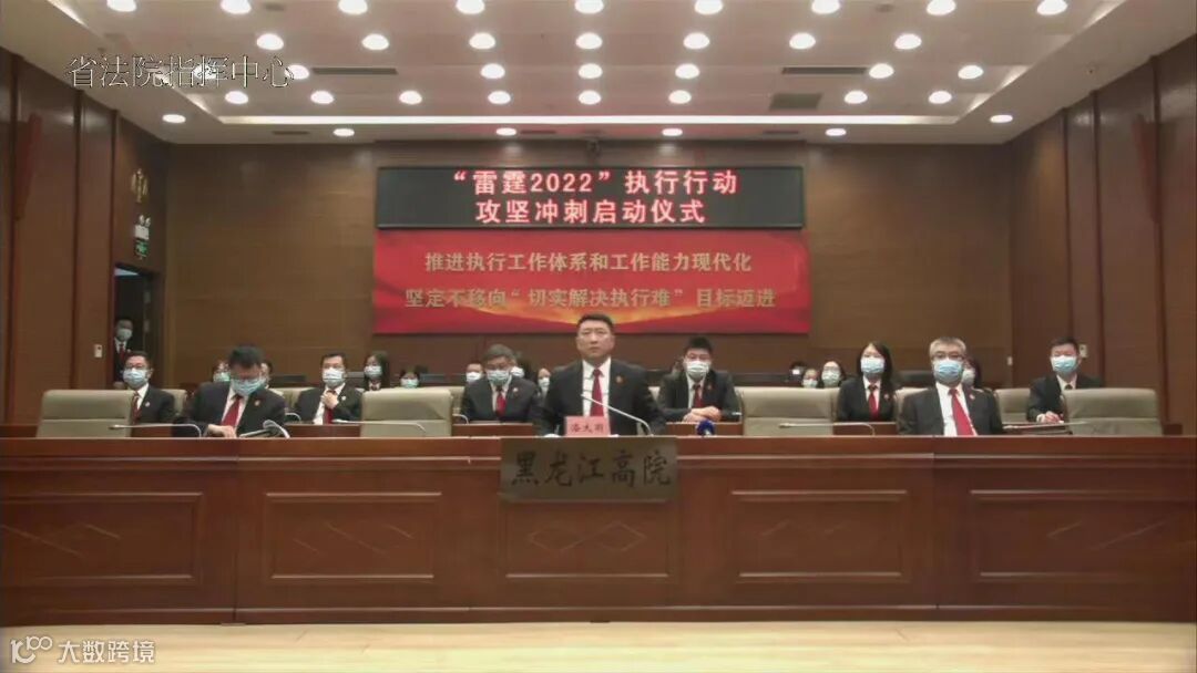 为推进“能力作风建设年”活动走深走实,切实把活动成效转化为破解执行工作难题、争先创优的实际行动;进一步落实“四讲四改”要求,有力服务“六稳”“六保”,黑龙江法院“雷霆2022”执行行动启动攻坚冲刺阶段,该阶段从即日起至10月底,将集中执结一批涉黑恶、涉特殊主体、涉金融等重大、疑难、复杂执行案件以及涉农、涉民生案件,集中惩戒一批失信被执行人,着力营造良好的外部执行环境和法治化营商环境,让人民群众感受到公平正义就在身边,更好地服务保障“六个龙江”建设。