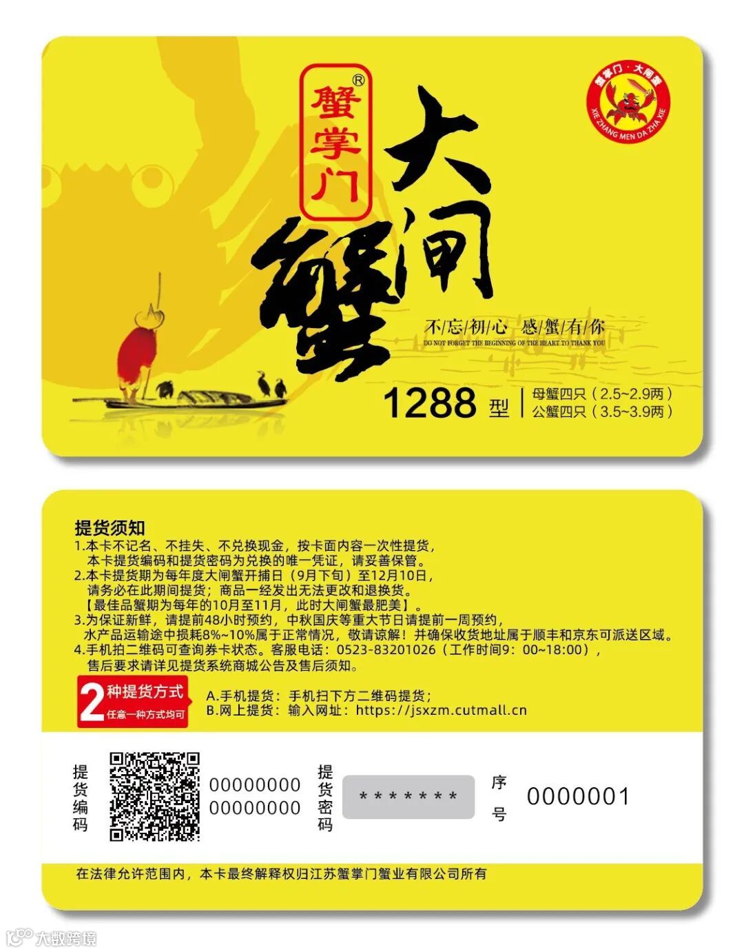 蟹卡可随身携带递送,您不用考虑大闸蟹的保管,保鲜以及送礼私密性等问题。