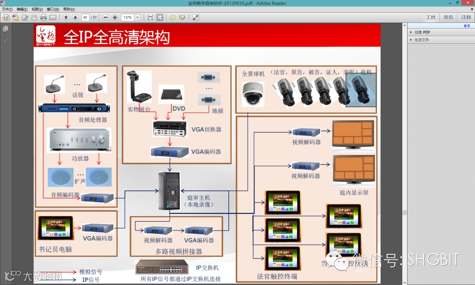 GBCOURT IP 庭审系统系统是为法院量身定制的全IP全高清庭审解决方案,它采用多级级联、网络化、高清视频等全新技术,整合了高清数字庭审主机、音视频管理平台和庭审业务系统,提供同步录音录像、语音激励、庭审监控、案件信息管理、电子笔录、庭审远程指挥、远程审判等贴合用户需求的完善功能,从而满足省、市、县各级法院的部署需求,实现各级法庭的统一指挥和管理。系统通过全IP化手段实现了系统设备的分布式架构,从而有效排除了单点故障对系统运行的影响,极大提高了系统的稳定性和抗故障性。