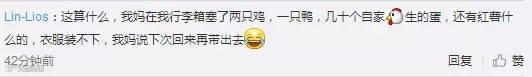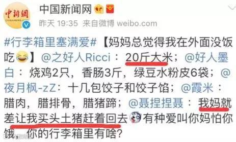 看了网友的回复,简直笑到飙泪。。。其实,塞满行李箱的不是土特产、不是洋气货,是爱、是满满的牵挂与不舍!
