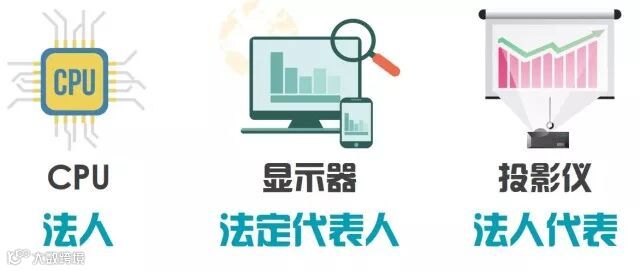 法人就像是CPU,法定代表人是显示器,而法人代表就是投影仪。