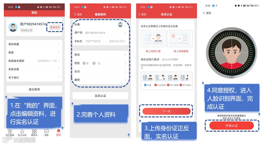 如果需要查看本人执行案件进展、联系案件承办法官,当事人为自然人则需要进行实名认证。